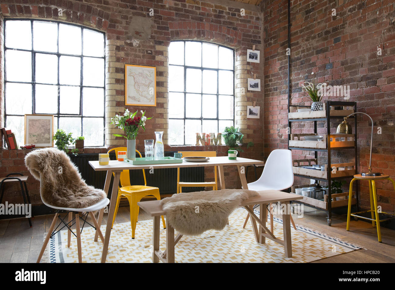 Une Salle A Manger Dans Un Style Loft Avec Des Murs En Briques Et